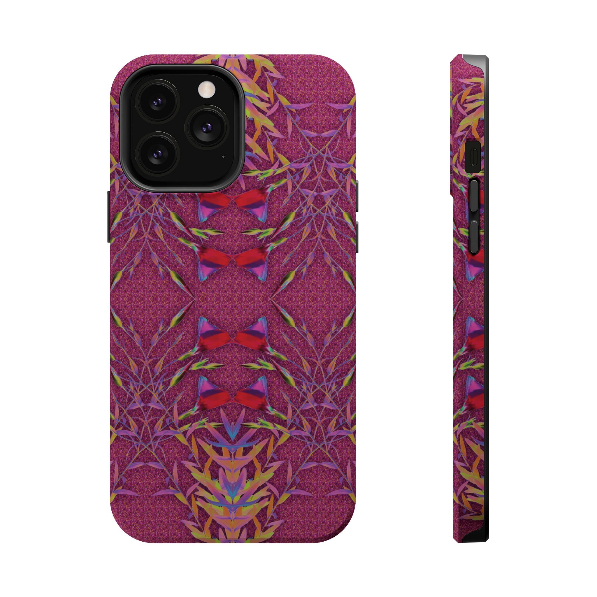 When aesthetics meet function, this custom magnetic tough case is born. Equipped with an outer polycarbonate shell and inner black TPU lining, this case delivers robust protection thanks to its durable, flexible, impact-resistant nature. Available in a matte or glossy finish, each case comes with an embedded magnet module that is compatible with MagSafe® accessories and a stunning print that fully wraps around your case's exterior.