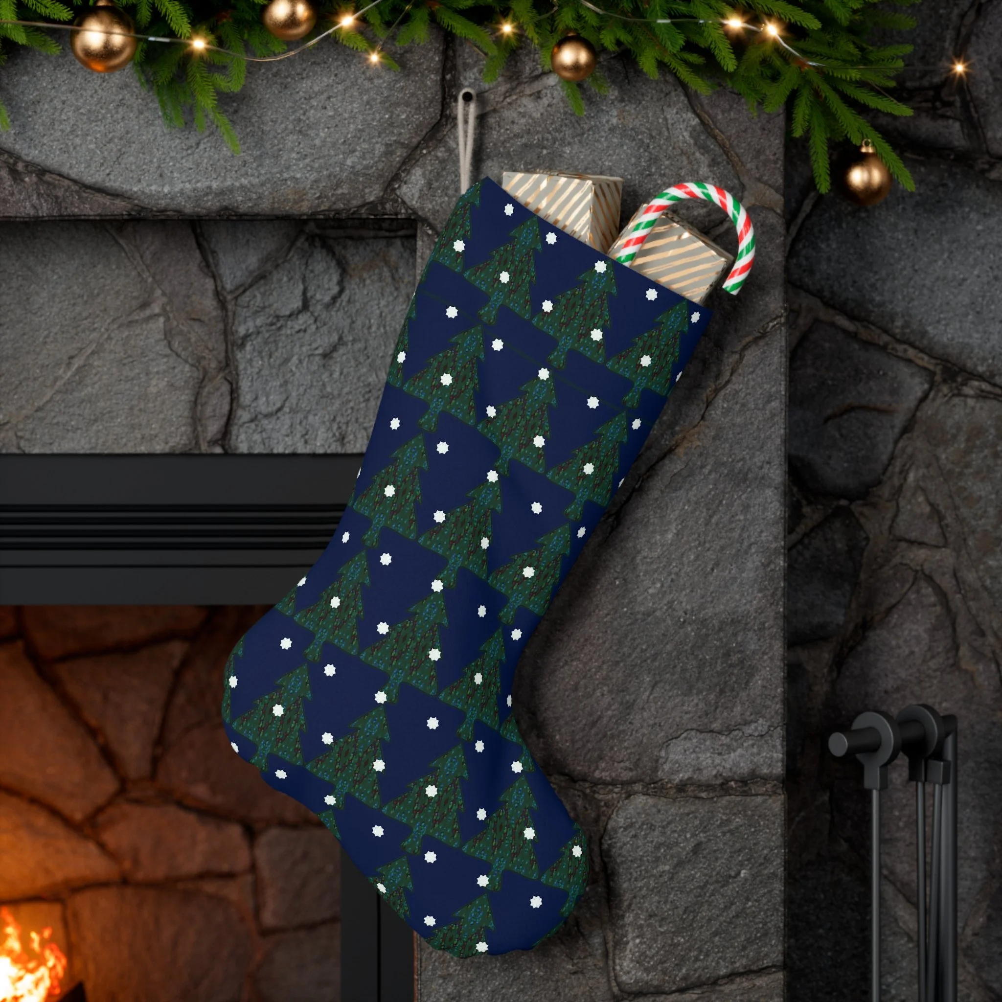 Santa Stocking - Trees & Snowflakes